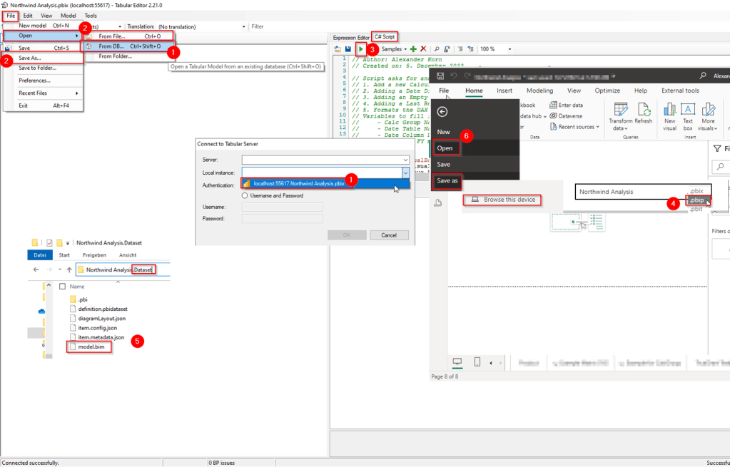 - Connect Tabular Editor (TE2) to PBI Report: Start by connecting with Tabular Editor (TE2) to your local Power BI instance, your Power BI report opened in PBI Desktop